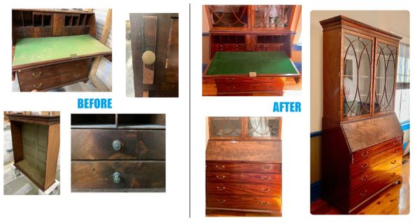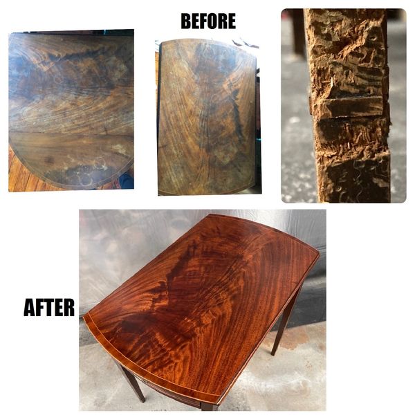 Antique solid mahogany drop-leaf table, refinished but not stained.